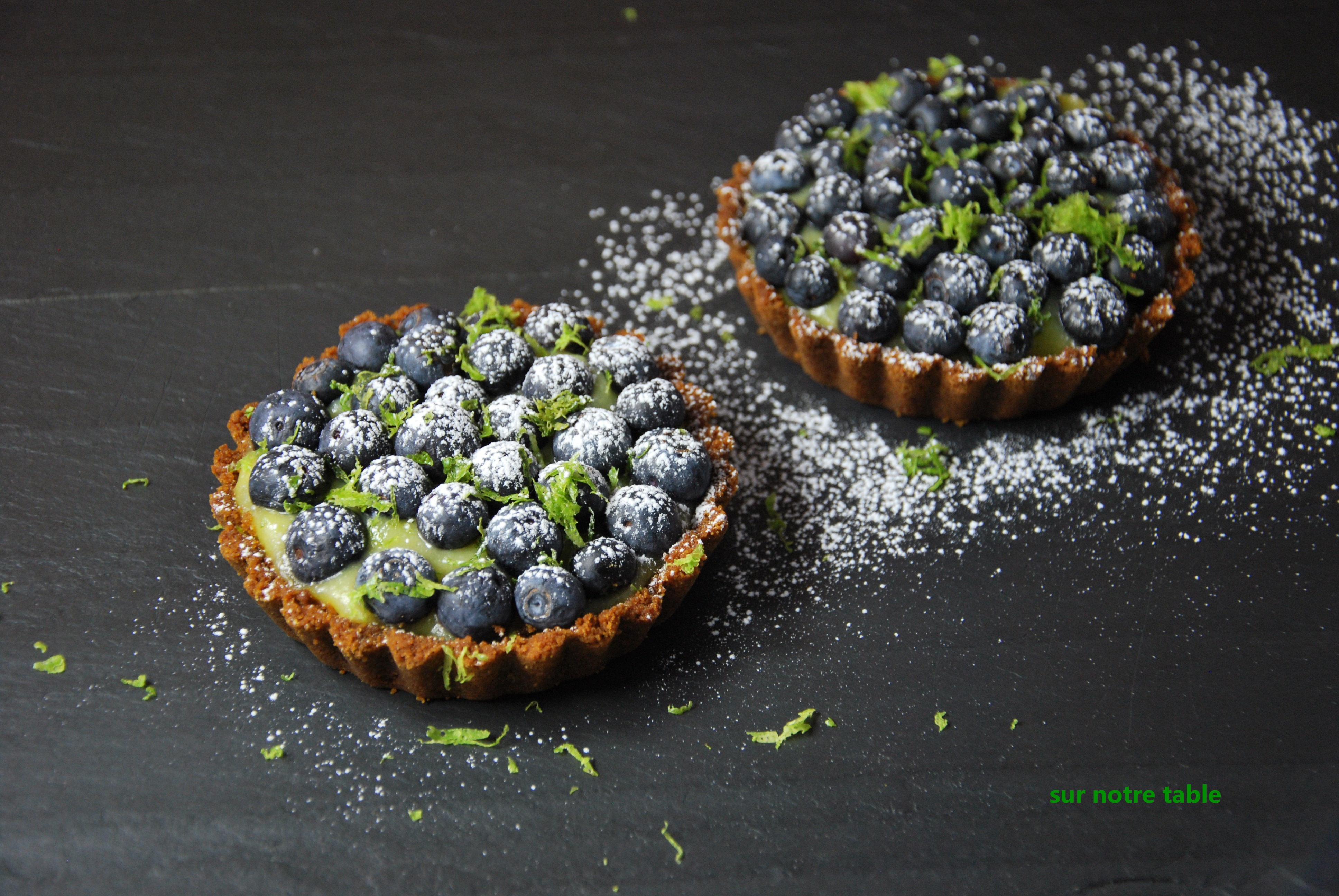 - Once cooled, remove tartlets from their pans and fill each with lime curd. Top each tartlet with blueberries and lime zest. Add a squeeze of lime juice over each tartlet and then dust with powdered sugar just before serving.